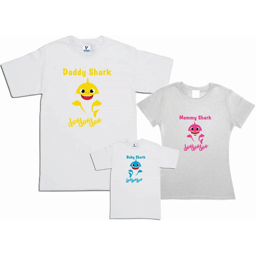 Pkt Baby Shark 3 Playeras Familia Mama Hijos Personaliza Bco