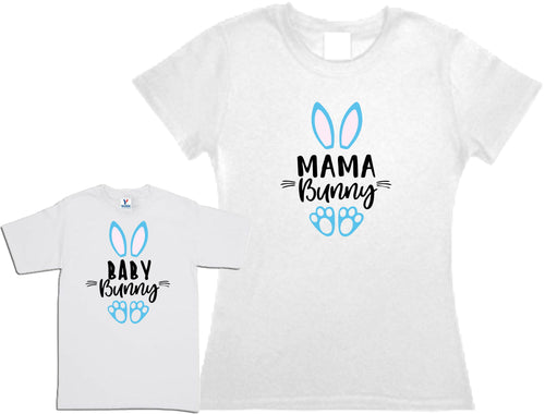 Set 2 Playeras Pascua Mamá Bunny Blue Dia de las Madres Mamá e hijo Familia Evento Duo Mamá e Hija Conejito
