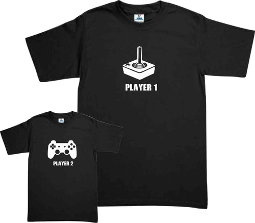 Set Gamer Player 1 & 2 2 Playeras papa e hijo Dia del Padre Familia Evento Duo Papá e Hijo