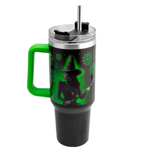 Wicked Termo Alto Doble Pared Con Asa Y Popote Elphaba, Capacidad 1.2 L Acero Inoxidable