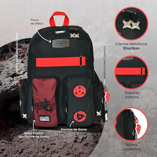 ¡Lleva contigo el legado de Itachi Uchiha con la Mochila Naruto Itachi Negra con Detalles Rojos! Cada detalle de esta mochila te conectará con el poderoso shinobi. ¡Agrega esta pieza única a tu colección y muestra tu admiración por uno de los personajes más icónicos de Naruto!