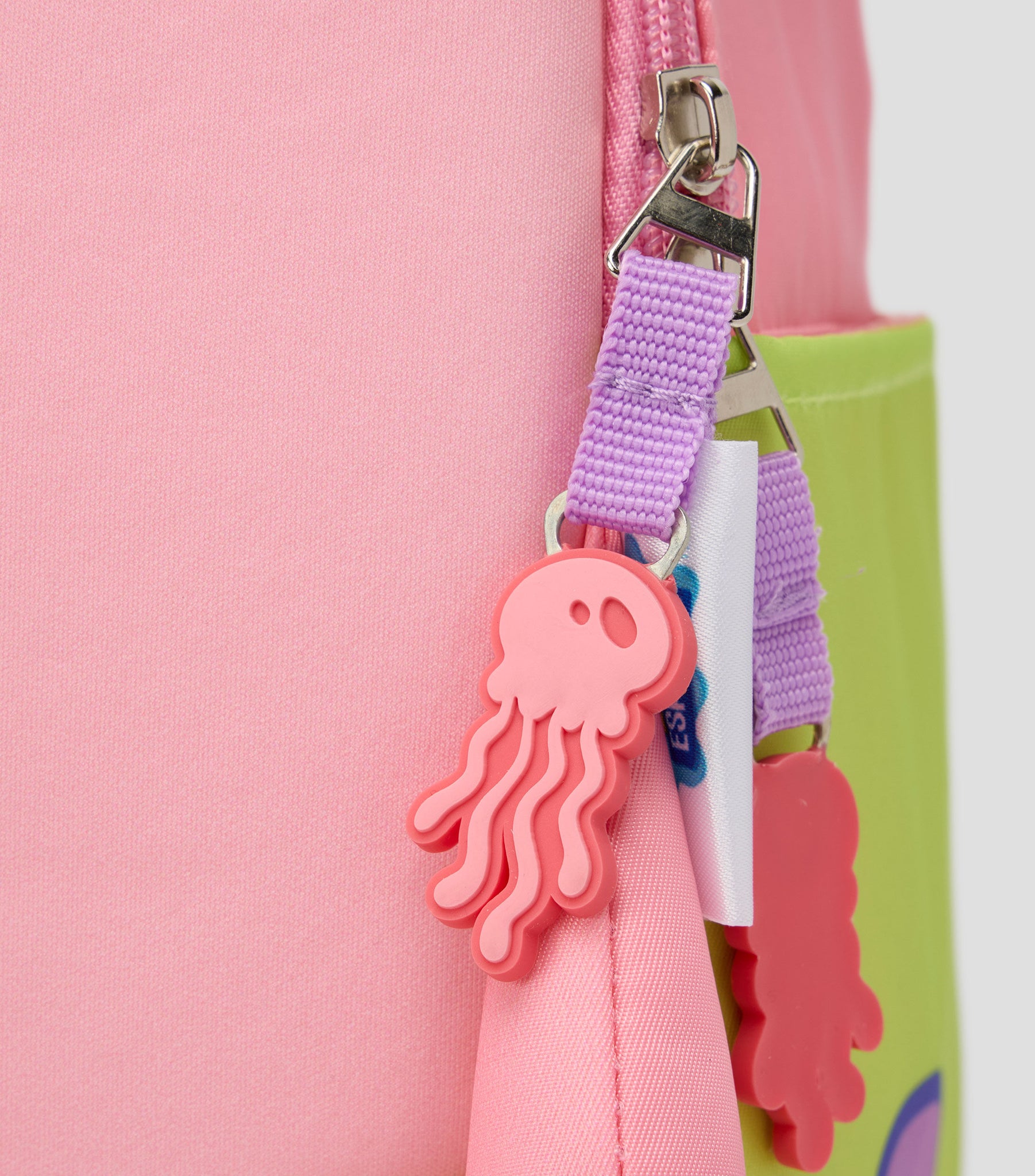 Mochila escolar Bob Esponja elaborada en poliéster con diseño alusivo a Patricio Estrella, compartimientos laterales, asa, correas ajustables para hombros y principal con cierre de cremallera.