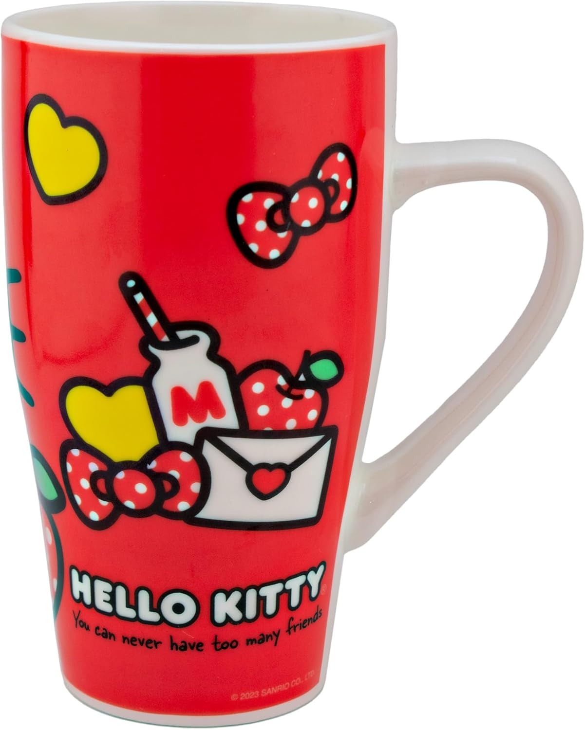 Hello Kitty Taza Grande de Porcelana Sanrio Tarro Largo con Asa Ergonómica Capacidad 600 ml