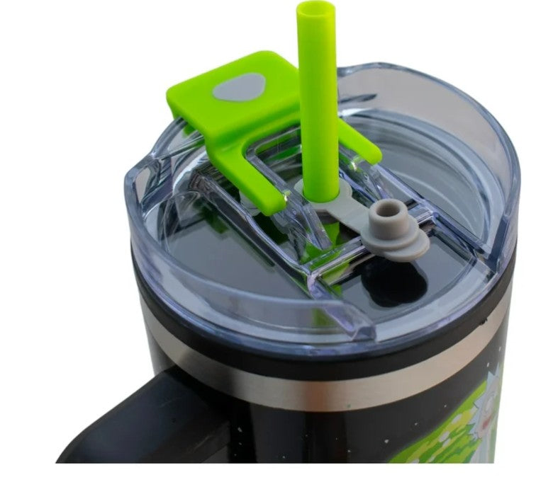 Rick and Morty Termo Alto Doble Pared Con Asa Y Popote Capacidad 1. 2 L