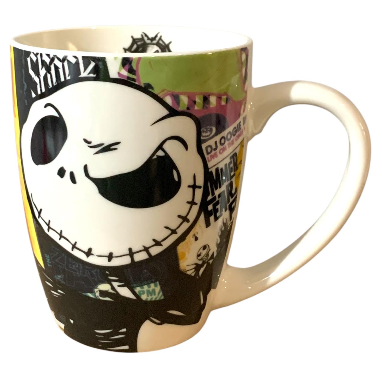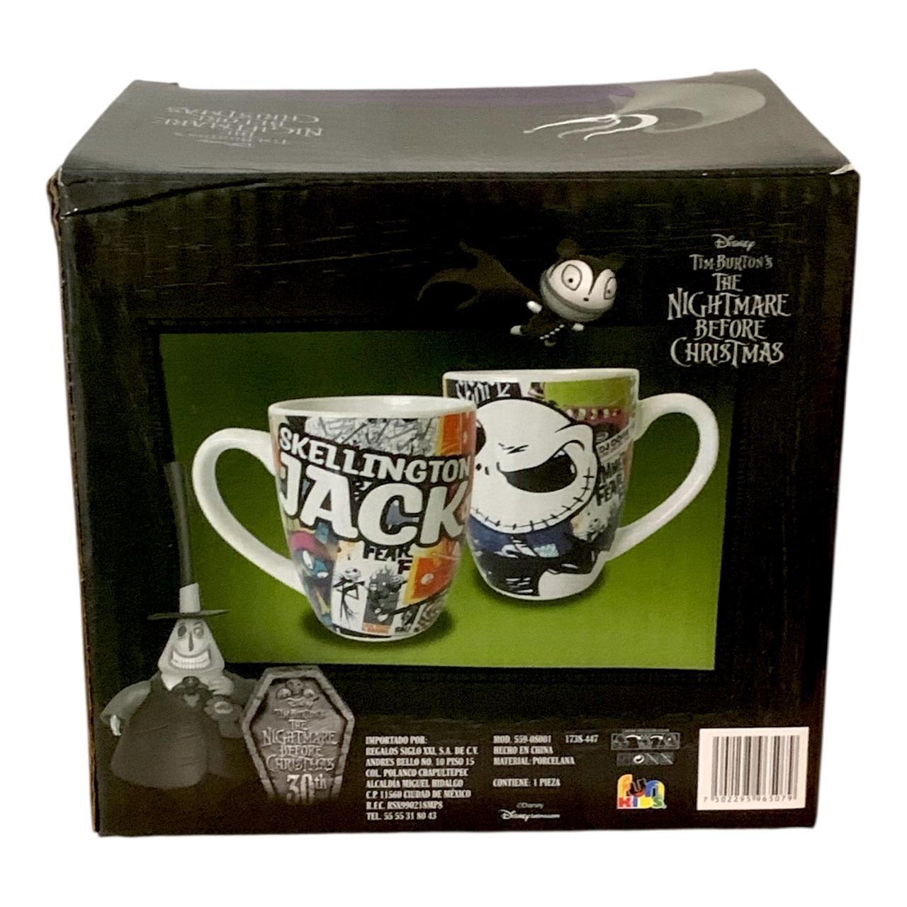 - Diseño Oficial de Jack Skellington: La taza presenta al icónico personaje de El Extraño Mundo de Jack con un fondo ilustrado, creando una pieza única y temática para coleccionistas y fans de Disney Tim Burton