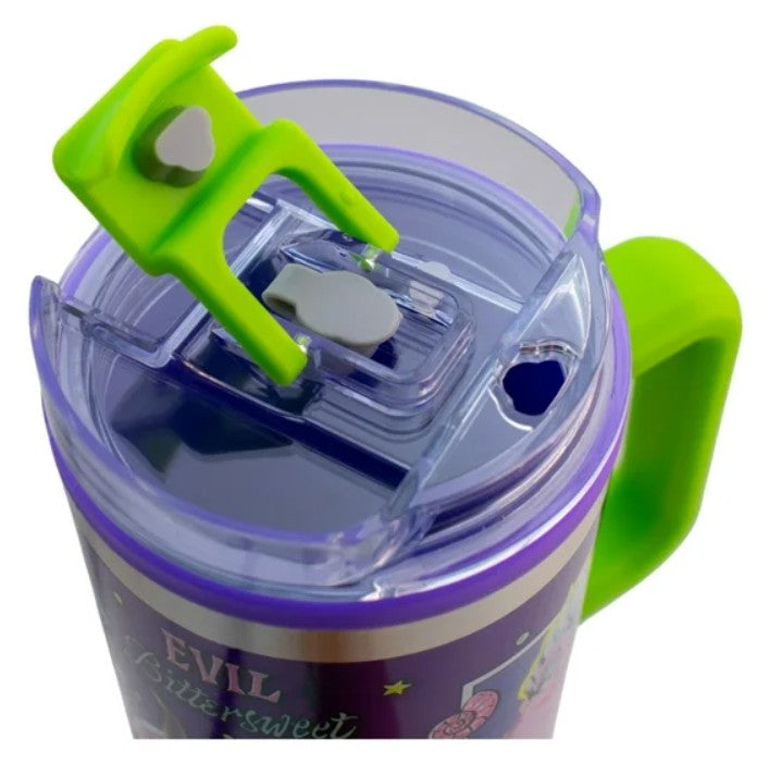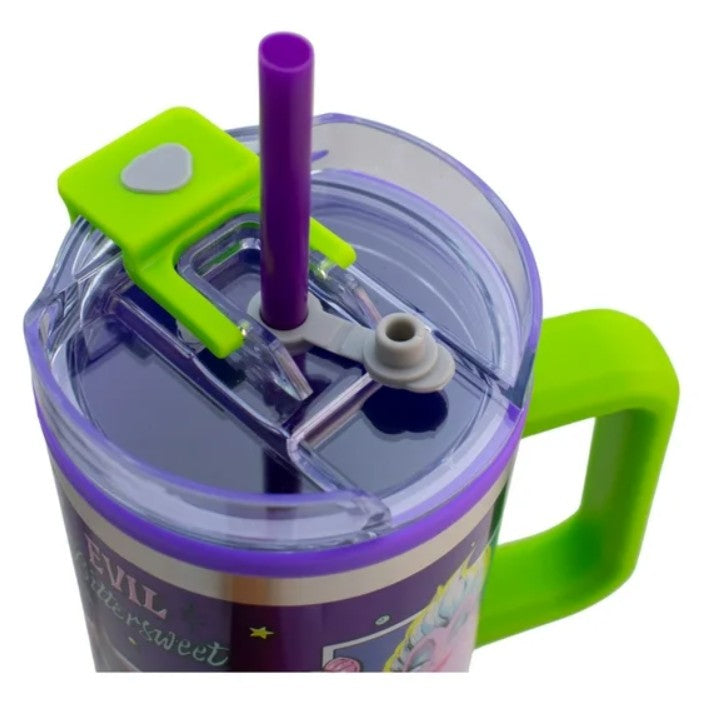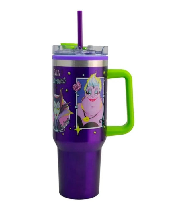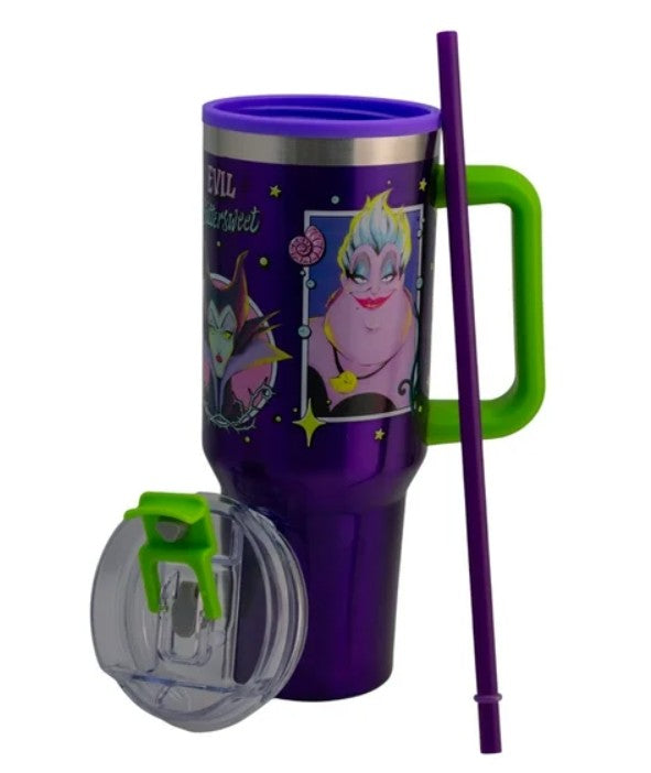 Gran capacidad y tamaño ideal: Con 1.2 litros de capacidad, es perfecto para mantener tus bebidas frías o calientes durante todo el día. Sus medidas (27.5 cm de alto y 7.5 cm de base) lo hacen práctico para acompañarte en la oficina, el gimnasio o al aire libreDoble pared de acero inoxidable: Fabricado con exterior de acero inoxidable y revestimiento interior de plástico libre de BPA. Su tecnología de doble pared mantiene la temperatura de tus bebidas por más tiempo, evitando la condensaciónAsa ergonómica para mayor comodidad: Su asa de 14.5 cm está diseñada para un agarre seguro y cómodo, facilitando su transporte. Ideal para llevarlo a todas partes con estiloTapa hermética a prueba de derrames: Equipada con una tapa segura y fácil de abrir, evitando derrames y manteniendo tus bebidas listas para disfrutar en cualquier momentoRegalo perfecto para fans de Disney: Con su diseño metalizado morado y las emblemáticas villanas de Disney, es el regalo ideal para coleccionistas, niños, adolescentes y adultos. Perfecto para cumpleaños, Navidad y cualquier ocasión especial.Celebra el lado más icónico de Disney con este termo metalizado morado que presenta a Maléfica, Úrsula, Cruella De Vil y la Reina Malvada. Un accesorio imprescindible para verdaderos fanáticos de las villanas más legendarias. ¡Haz tuyo este termo de las Villanas Disney y demuestra tu lado más atrevido!
